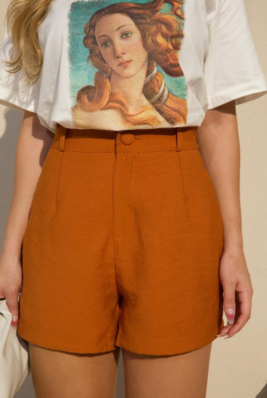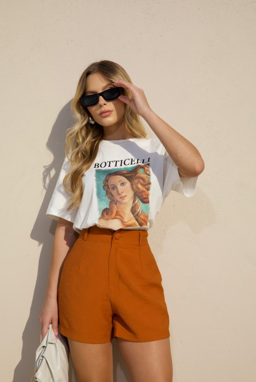 Short básico em alfaiataria, sem bolsos, com zíper frontal e botão embutido do mesmo tecido.